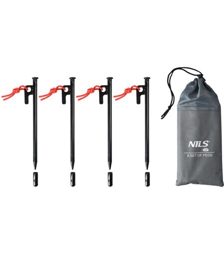 NILS CAMP NC1727 on neljän kestävän teräskiilan setti, joka tarjoaa varman pidon kaikissa olosuhteissa. Silmukat ja narut helpottavat käyttöä ja mukana tulee käytännöllinen säilytyspussi. ...