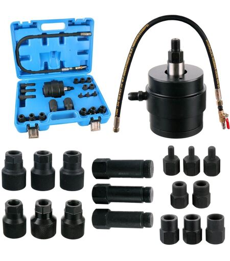 Pneumaattinen dieselruiskuttimen ulosvetäjä, Common Rail -suuttimet Boschilta, Delphiltä, Densolta, Siemensiltä jne. Vetoakselin ulosvetäjää käytetään, kun perinteiset menetelmät, kuten suuttimen kiertäminen tai vetäminen pihdeillä tai jakoavaimella, eivät tuota riittäviä tuloksia. Pneumaattinen suuttimen ulosvetäjä käyttää paineilman voimaa suuttimen irrottamiseen koneesta. Varustettu erilaisilla adaptereilla, yhteensopiva laajan valikoiman markkinoilla olevien suuttimien kanssa. Tekniset tiedot: CR-V-teräsTulopaine 5-8 barVääntömomentti: 20-30 Nm,Yhteensopivat merkit Bosch, Delphi, Denso, Siemens ja kierreliitännät, Sovittimet: M8x1.0, M8x1.25, M8x1.5, M14x1.5, M16x1.5, M17x1.0, M18x0.75, M18x1.5, M20x1.0, M20x1.5, M22x1.5, M25x0.5, M25x1.0, M26x0.75, M27x0.75, M27x1.0, M29x1.0, M31x0.75. ...