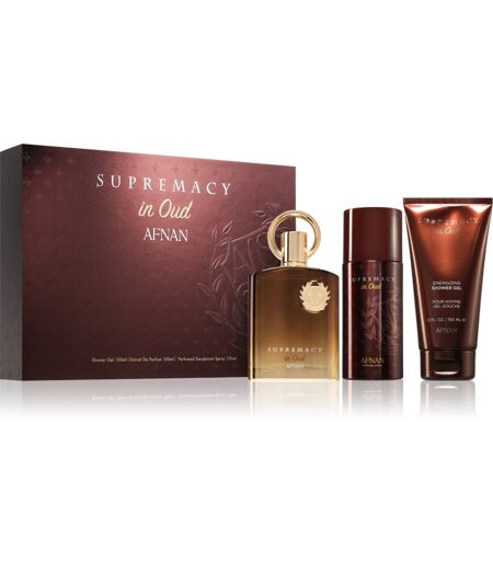 Afnan Supremacy In Oud,  , Unisex-setit unisex, Tuoksusetti Afnan Supremacy In Oud tarjoaa takuuvarman tavan ilahduttaa läheisiäsi. Se sisältää ainutlaatuisen tuoksun, joka tuottaa iloa ja herättää kiinnostuksen myös kauniilla pakkauksella, jonka sisällä se piileksii. Anna lahjaksi tämä ylellinen setti ja iloitse siitä, että olet tehnyt läheisesi onnellisiksi.  Ominaisuudet:  valikoima persoonallisen herkullisia tuoksuja  Setin sisältö:   Eau de Parfum 100 ml  Afnan Supremacy In Oud hajustettu suihkugeeli 150 ml Afnan Supremacy In Oud deodorantti 150 ml ...
