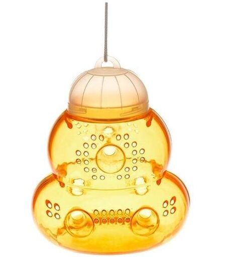 Wasp -ansa muotoiltu kuin ampiaispesä. Voidaan asettaa pöydälle tai ripustaa puun haarasta tai koukusta. Avaa pesä ja laita olutta tai makeaa mehua sisälle yhdessä ruokalusikallisen astianpesuainetta. Ampiaiset houkuttelevat hajua, mutta eivät pysty lentämään ansaan. Helppo käyttää, vaarallisia kemikaaleja ei tarvita. ...