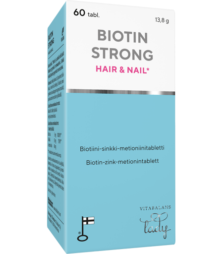 Biotiinia, sinkkiä ja metioniinia sisältävä valmiste hiuksille ja kynsille. ...