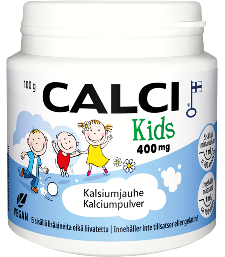 Calci Kids kalsiumjauhe on kotimainen vaihtoehto lasten ja nuorten kalkkitableteille. Sitä on helppo annostella ruoan tai nesteen sekaan. Calci Kids sopii kaikille yli 6 kk ikäisille suositusten mukaisesti. ...
