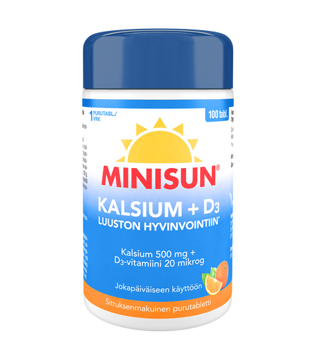 Oy Verman Ab Minisun Kalsium 500 mg + D-vitamiini 20 mikrog 100 purutabl