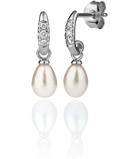Kohinoor Elina valkokultaiset timantti-helmi korvakorut 143-267V-08 - female