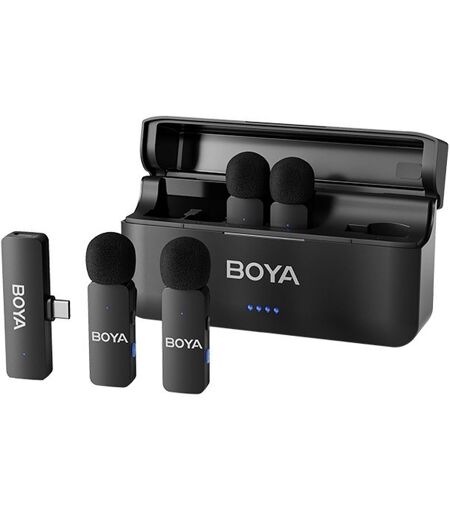 Boya BY-V4 on ammattimainen langaton mikrofonijärjestelmä, joka on suunniteltu liikkuvaan tallennukseen, mukaan lukien vloggaus, podcastien tekeminen ja suoratoistolähetykset. BY-V4-sarja sisältää neljä lähetinmikrofonia ja yhden vastaanottimen. Boya BY-V4 on laadukas ääniratkaisu edulliseen hintaan. Erittäin kompakti ja kannettava langaton mikrofonijärjestelmä\nYhteensopiva USB-C-liitännällä varustettujen laitteiden kanssa\nSarja sisältää neljä lähetinmikrofonia ja yhden vastaanottimen\nSisäänrakennettu monisuuntainen mikrofoni poimii ääntä 360° alueelta\nValittavissa oleva kohinanvaimennustila\nAutomaattinen pariliitos älylaitteen kanssa ja helppo Plug & Play -käyttö\nLähettimen integroitu akku takaa jopa 6 tunnin käyttöajan\nLaaja toiminta-alue jopa 200 m\n Pieni ja kevyt langaton mikrofoni BY-V-sarja on vaikuttavan kompakti ja kevyt – lähettimen paino on vain 9,5 g ja vastaanottimen vain 6 grammaa – ja plug & play -liitännän ansiosta se on erittäin helppo asentaa. Laadukas ääni kohinanvaimennuksen ansiosta BY-V-sarja soveltuu sekä perinteiseen äänen tallennukseen studiossa että tallennukseen meluisissa ympäristöissä. Älykäs kohinanvaimennustekniikka pystyy tehokkaasti tunnistamaan ympäristön melun ja vaimentamaan sitä. Paina NR-painiketta aktivoidaksesi kohinanvaimennustilan, joka suodattaa suurimman osan ympäristön melusta jättäen tallentimelle vain puhtaan äänen. Pitkäkestoinen akku Kun BY-V4-vastaanotin on yhdistetty älypuhelimeen, puhelinta voidaan ladata samanaikaisesti vastaanottimen USB-C-portin ansiosta. Tämä tarkoittaa, että voit suoratoistaa keskeytyksettä ilman, että sinun tarvitsee huolehtia puhelimen akun kestosta. Lisäksi lähettimen sisäänrakennettu akku kestää jopa 6 tuntia yhtäjaksoisesti. ...