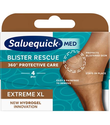 Salvequick Med Blister Rescue Extreme XL rakkolaastari on innovatiivinen rakkolaastari. Siinä on hydrogeeliä sisältävä iso haavatyyny erityisesti kantapään isoille rakoille. Välitön kivun ja paineen helpotus pehmentävillä haavatyynyillä. Helppo poistaa vahingoittamatta hiertymää Hydrogel-haavatyynyjen kevyemmän liimatarttuvuuden ansiosta. Pysyy paikoillaan laastarin voimakkaan liimapinnan ansiosta. Nopeuttaa paranemista luomalla optimaalisen ympäristön haavan paranemiselle. Ominaisuudet varmistavat äärimmäisen mukavuuden ja joustavuuden. CE-merkitty lääkinnällinen laite. Valmistaja: Orkla Wound Care AB. ...