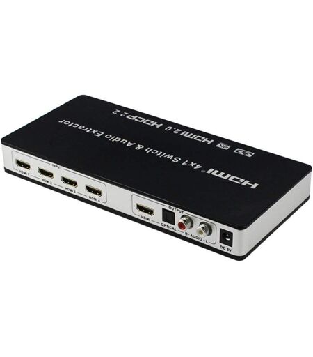 4x1 HDMI-kytkin ja äänenjakaja UHD 4K 3D HDMI 2.0 ARC Toslink + RCA