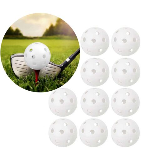 Harjoituspallot, joissa 26 symmetristä reikää. Nämä harjoitusgolfpallot tarjoavat todenmukaisen pyörityksen ja tuntuman, mutta ovat erittäin kevyitä eivätkä lennä kauas. Voit helposti harjoitella kotona puutarhassa ilman riskiä, että pallo lentää naapuriin tai vahingoittaa esineitä. Täydellinen lämmittelyyn tai golfharjoitteluun. Tekniset tiedot: Materiaali: Muovi Koko: Halkaisija 41 mm Paketti sisältää: 10 x harjoituspalloa golfiin ...
