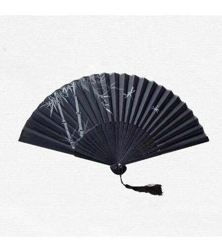 Silkkiviuhka tupsulla - Musta / Valkoinen Bambu
