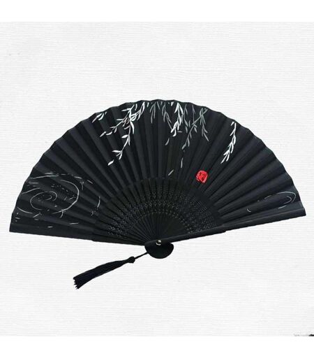 Silkkiviuhka tupsulla - Musta / Valkoiset oksat - Puukuvio - Silkki- ja bambumateriaali Mukana tupsu tuomaan lisätyyliä! Tarkemmat ominaisuudet: Japanilainen viuhka on täydellinen otettavaksi mukaan juhliin, sillä se antaa sinulle hieman ilmaa, sen voi taittaa kokoon ja se mahtuu helposti käsilaukkuun. Yhdistä tämä muihin asusteisiisi tehdäksesi hyvän vaikutuksen. Koristeellinen tupsu ja läpinäkyvämpi silkki lisäävät hieman ylimääräistä eleganssia viuhkaasi. Tekniset tiedot: Mitat: 36 cm Materiaalit: Silkki, bambu Väri: Musta, valkoinen, läpinäkyvä Paino: 26 g Luokat: viuhka, silkki, tupsu, oksa, kuvio, kukka, bambu, japani, väri, musta, valkoinen, läpinäkyvä ...