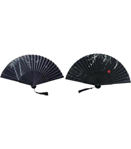 Kaksinkertainen silkkiviuhka tupsulla - Musta/valkoinen oksat + bambu