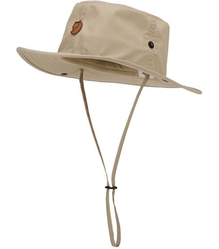 Hyvin suojaava hattu kesän retkille Leveälierinen aurinkohattu nopeasti kuivuvaa, viileää G-1000 Lite - materiaalia. Säädettävä leukahihna ja painonapit, joiden avulla lieri voidaan kääntää ylös sivuilta. Aurinkohattu suojaa kasvot ja niskan erinomaisesti auringolta vaelluksilla, melontaretkillä ja aina ulkoiltaessa. Pehmeän lierin voi taittaa ylös sivuilta ja kiinnittää painonapeilla. Säädettävä G-1000-materiaalista valmistettu leukahihna pitää hatun päässä kovallakin tuulella. Hyvä suoja auringolta Pehmeä lieri, kiinnitettävissä napeilla Säädettävä leukahihna pitää hatun varmasti päässä Edessä nahkainen Fjällräven-logo ...