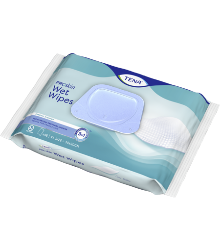 Suurikokoinen kosteuspyyhe, joka puhdistaa, hoitaa ja suojaa herkkää ihoaTENA ProSkin Kosteat pyyhkeet ovat valmiiksi kostutettuja pyyhkeitä aikuisille, jotka puhdistavat, kosteuttavat ja suojaavat herkintäkin ihoa. Tämä suurikokoinen kosteuspyyhe on ihanteellinen päivittäisessä käytössä intiimialueen puhdistamiseen inkontinenssituotteen vaihdon yhteydessä tai koko kehon puhdistamiseen. TENA ProSkin kosteuspyyhe on hellävarainen vaihtoehto vedelle ja saippualle ja auttaa pitämään ihon raikkaana, puhtaana ja hajuttomana. Lisäksi kätevän muovikannen ansiosta pyyhkeen ottaminen onnistuu yhdellä kädellä.Kolmitehoista ihonhoitoa päivittäiseen henkilökohtaisen hygienian hoitoonPuhdistaa, suojaa ja kosteuttaa ihoa.Suunniteltu aikuisilleXL-koko, 30 x 20 cm, on noin kaksi kertaa suurempi kuin keskikokoinen vauvojen kosteuspyyhe.Miellyttävää hoivaaHelppo ottaa yhdellä kädellä; ei vaadi huuhtelua eikä kuivaamista.Hellävarainen herkälle ihollePehmeä ja paksu pyyhe on hellävarainen.Derma ...
