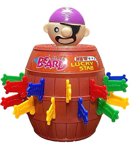 Koe jännitys Merirosvon kanssa tynnyrissä! Hauska perhepeli niin isoille kuin pienillekin. Oletko valmis jännittävään seikkailuun? Pelin Merirosvo tynnyrissä (Game Barrel Pirate) avulla koko perhe voi tuntea olevansa oikeita merirosvoja ja samalla jakaa paljon naurua pelin aikana. Paina merirosvoa tynnyriin ja vuorotellen työnnä miekat sisään. Mutta varo! Valitsetko väärän reiän, voit saada merirosvon lentämään suoraan kaikkien iloksi (tai kauhistukseksi). Ja tiesitkö, että merirosvot tuolloin rakastivat tehdä kepposia? Joten pidä silmät auki ja nauti tästä hauskasta, huumorista ja jännittävästä merirosvopelistä! Hauska ja koukuttava koko perheelleIdeaali kotiin ja toimistoonMateriaali: ABS, CE-merkittyKoko: n. 17 x 12 x 12 cmVäri/muoto: vaihtelee ja lähetetään satunnaisestiIkä: 3 +HUOM! Sisältää pieniä osia, ei sovellu alle 3-vuotiaille lapsille! ...