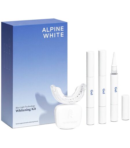Pakkaus koostuu seuraavista osista. Erityisesti kehitetty valkaisugeeli toimii yhdessä LED-valon kanssa vain 15 minuutissa päivässä. Näkyvät tulokset jo 3 päivän kuluttua. Hellävarainen hampaille ja ikenille. Kätevä kotikäyttöön. Alpine White Teeth Whitening Gel -valkaisugeelin luonnolliset ainesosat eivät ainoastaan valkaise tehokkaasti, vaan auttavat myös vähentämään ärsytystä ja vahvistavat kiillettä remineralisaatioprosessin kautta. Kliinisesti ja hammaslääkärin hyväksymä koostumus. ...