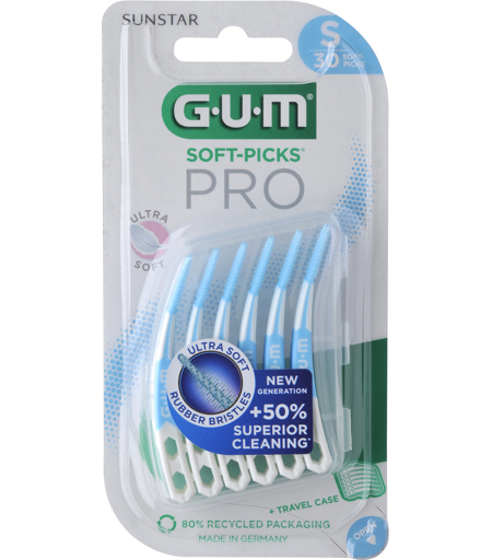 GUM Soft Picks PRO on uuden sukupolven hammasväliharja!Erittäin pehmeä hammasväliharja, jossa kaksinkertaiset rivit ja tiivis harjasalue, jossa on 152 joustavaa kumiharjasta. Pyöristettyjen harjasten avulla GUM SOFT PICKS PRO - väliharja on helppo saada hammasväleihin. Kaareva muoto takaa helpomman pääsyn takahampaisiin Helppokäyttöisyyden myötä puhtaampi ja raikkaampi tunne ja tulos.Soft-Picks harjatikut ovat hellävaraisia ikenille ja hampaille. Tuotteet eivät sisällä lateksia, puuta, metallia tai tiuraamikumia.GUM Soft-Picks PROn ergonominen, kaareva muotoilu helpottaa takahampaiden välien puhdistusta ja sen pitkästävarresta saa tukevan otteen. Sopii hyvin pienemmille hammasväleille ja voidaan käyttää myös oikomiskojeiden, hammassiltojen ja hammasimplanttien kanssa.Valmistettu Saksassa. Kestävästi tuotettu, pakattu ja sertifioitu. ...