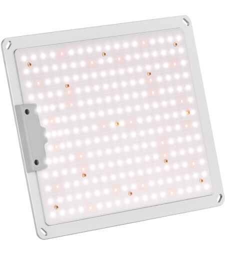 Olipa sitten pilvinen päivä, satoipa vettä tai lunta: tehokkaalla ja ympäristöystävällisellä, puutarhalaitteiden asiantuntijan, hillvertin kasvatusvalolla HT-WEDGE-1000GL kasvisi saavat auringonvaloa ympäri vuoden. Kasvivalo valaisee 110 W tehollaan ja 234 LED-valollaan ammattimaisten kasvihuoneiden lisäksi myös harrastelijakasvattajien kasveja kotikellareissa tai autotalleissa ja vastaa lähes luonnollista auringonvaloa. Leveä valospektri aallonpituuksillaan 380 - 780 nm takaa optimaalisen ja terveellisen kasvun sekä elintärkeän fotosynteesin. Kasvit absorboivat yli 95 % valoa ja hyödyntävät sitä aina siemenestä kukintaan saakka. Tasainen valo pidentää kukinta-aikaa ja lisäksi parantaa sitä. Sinun ei edes tarvitse vaihtaa eri kasvuvaiheisiin yksittäisten LED-valojen tyyppiä. Kasvivaloon sisäänrakennetut, suuren valotehon LEDit kestävät jopa 50 000 h. Eri kasvityypit vaativat eri PPFD-arvot. Kasvisvalon fotosynteettisen fotonivirtaustiheyden (PPFD) ollessa 889 µmol/m2/s sopii tämä kasvivalo erinomaisesti kasvien, kuten yrttien (basilika, rosmariini) ja vihannesten (tomaatit, kurkut, salaatit), kaikkiin kasvuvaiheisiin, mutta myös kukkien kasvatukseen – niin vedessä kuin myös maaperässä viljeltyinä. Energiaystävällinen kasvivalo sopii kaikkialle, minne auringonvalo ei paista ja missä lisävalolle on tarvetta. LED-valot peittävät 120° säteilykulmallaan suuren alan. Mukana toimitettavan ripustimen avulla ripustat valon erittäin vaivattomasti kasvien tai juuresten yläpuolelle. ...